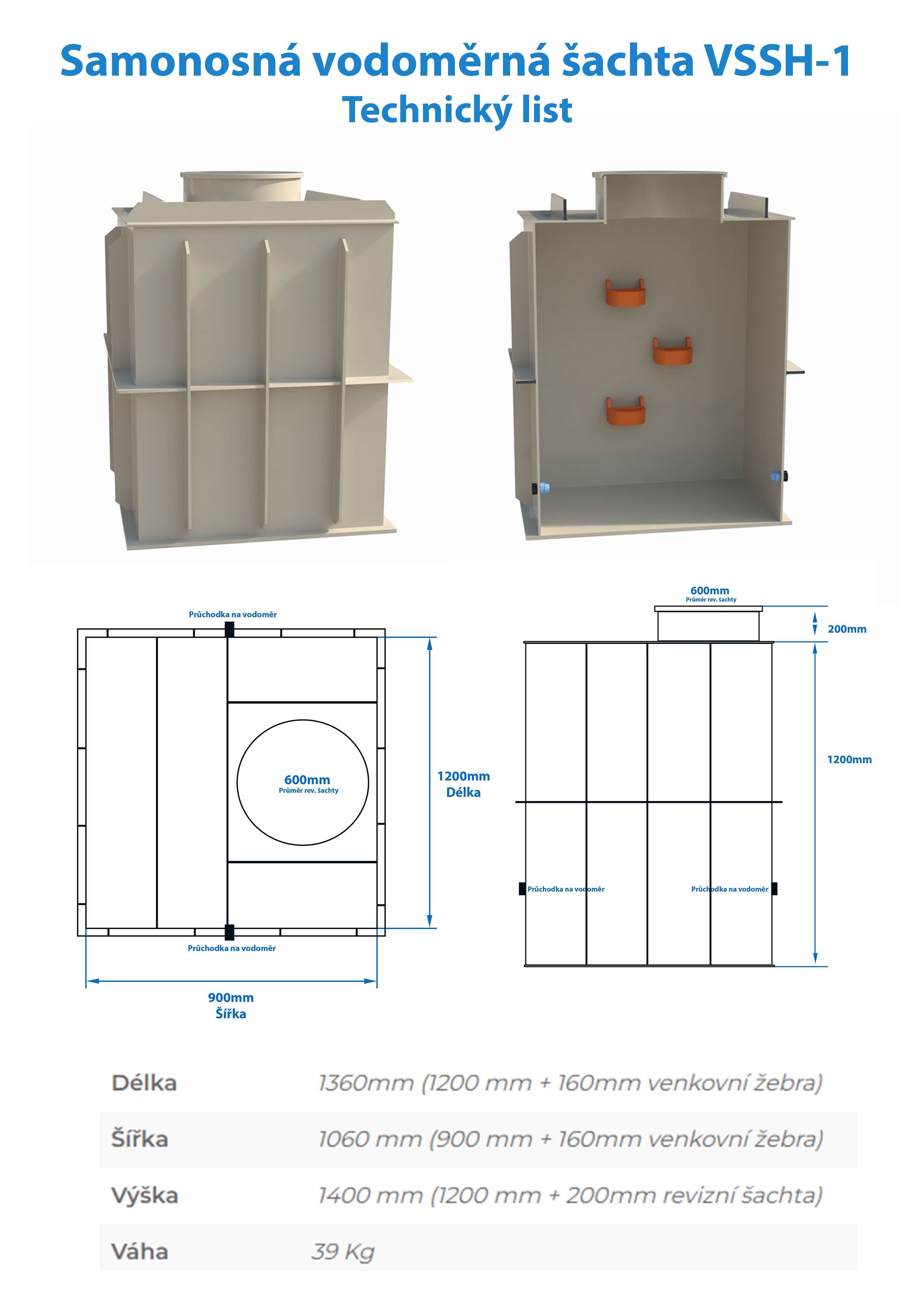 | Výška | 1400 mm (1200 mm + 200mm revizní šachta) |